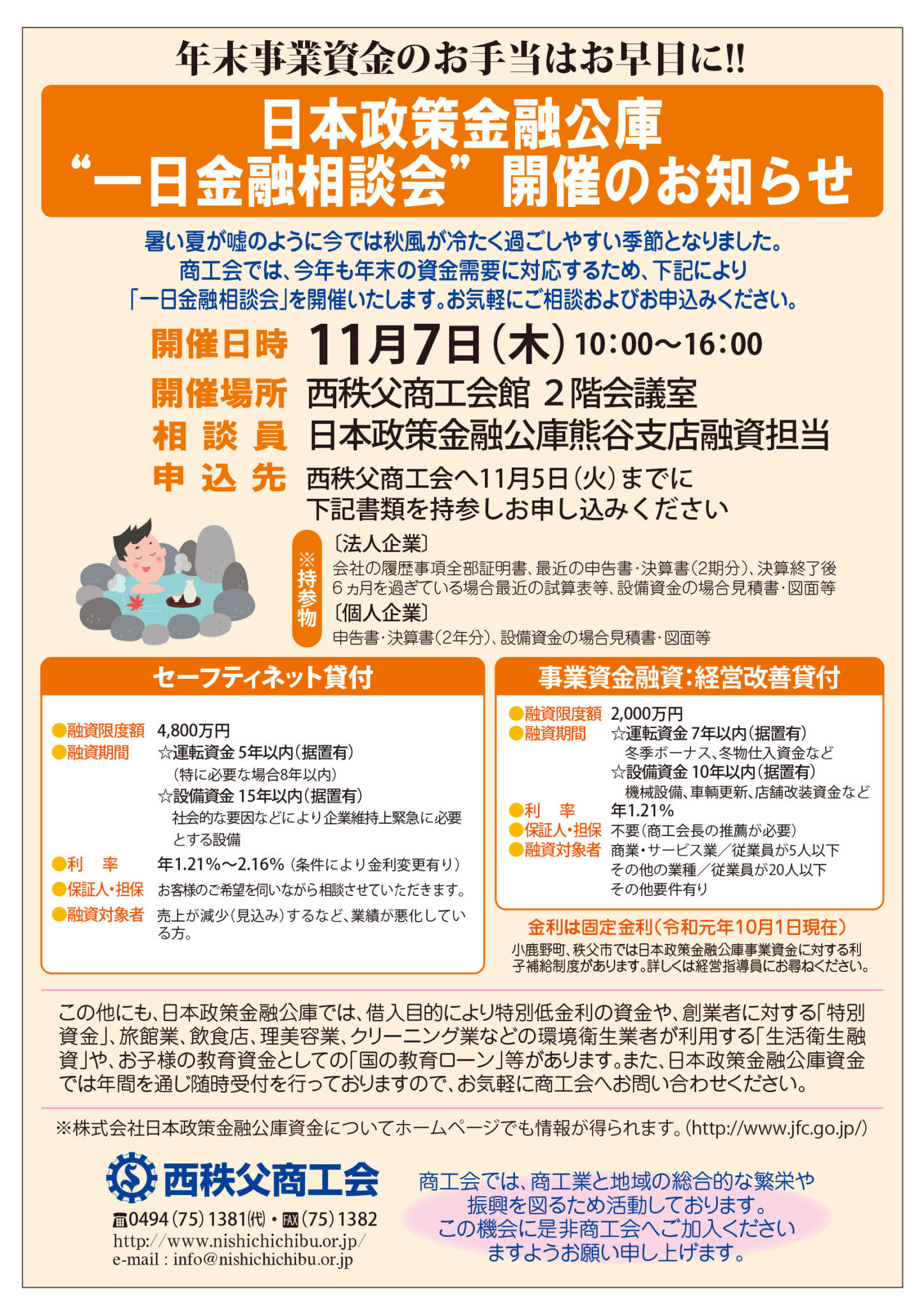 <申込先> 西秩父商工会へ11月5日(火)までにお申し込みください