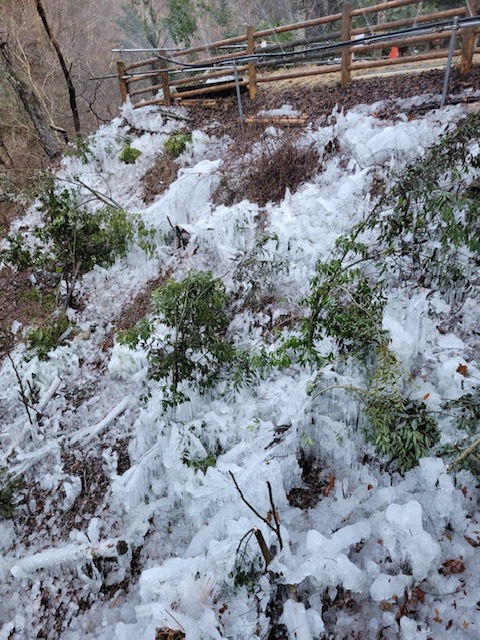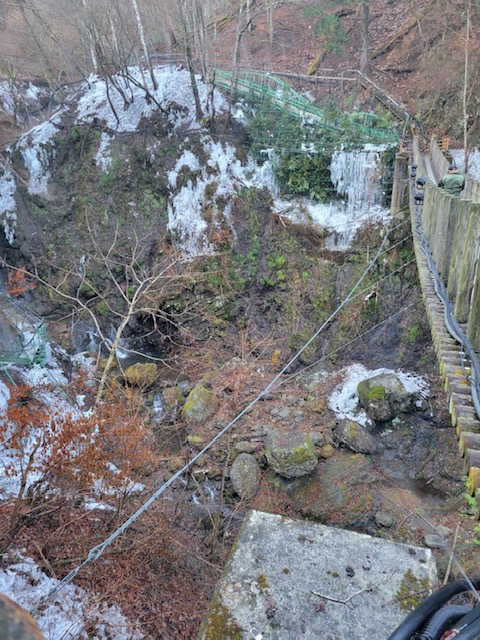 尾ノ内氷柱は、暖冬の影響を受け氷結状態が乏しくなっております。