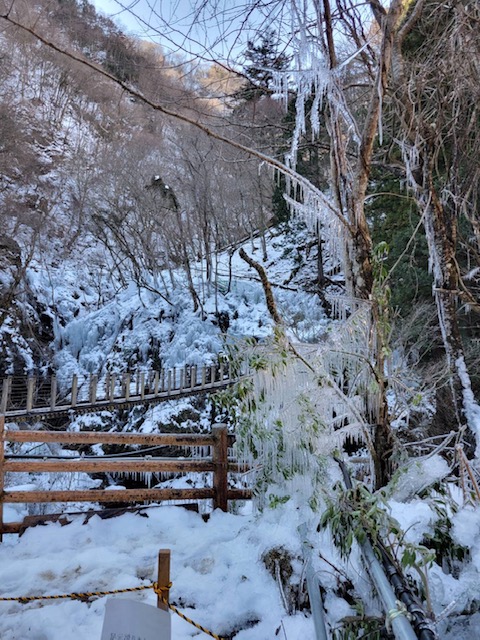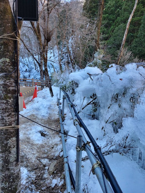 尾ノ内氷柱では、ここに来て暖冬の影響を受け氷柱が溶けてきている状況です。 このままこの状態が続くと、開催最後の2月25日前に氷柱見学を終了することがありますのでお知らせいたします。 なお、その際にはホームページにてお知らせいたします。