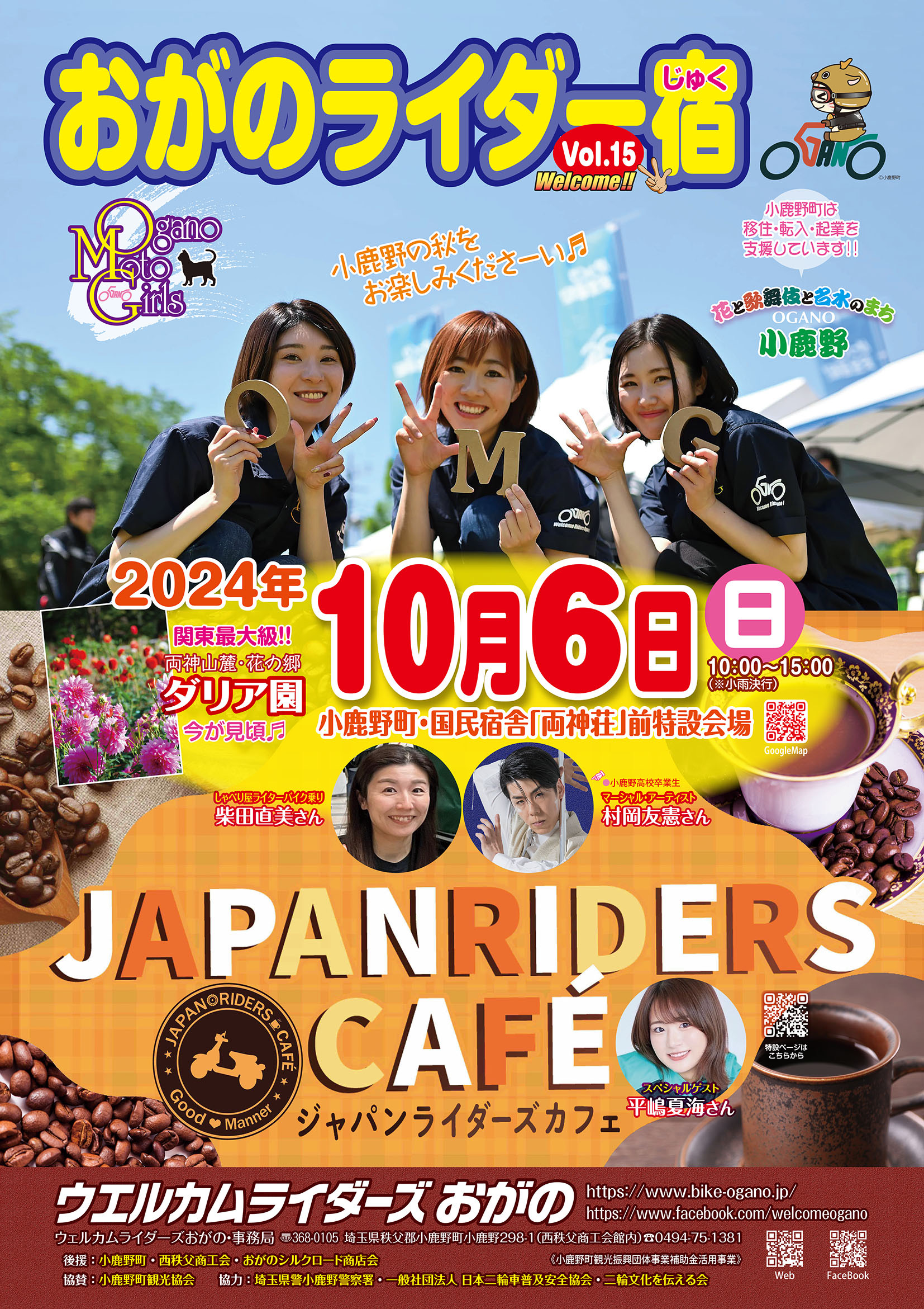 10月6日(日)、小鹿野町・国民宿舎両神荘前にて、おがのライダー宿Vol.15が開催されます。