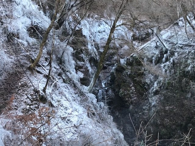 本日は薄っすらと氷が張りました。寒い日が続けばと期待していますが? 1/25ライトアップは予定通り、氷柱の有無に関係なく実施いたします。 県立小鹿野高等学校生徒による竹あかり制作による展示や小鹿野町の幼児による「つららん」塗り絵の展示など、尾ノ内渓谷に幻想的な風景が見られるかもしれません。