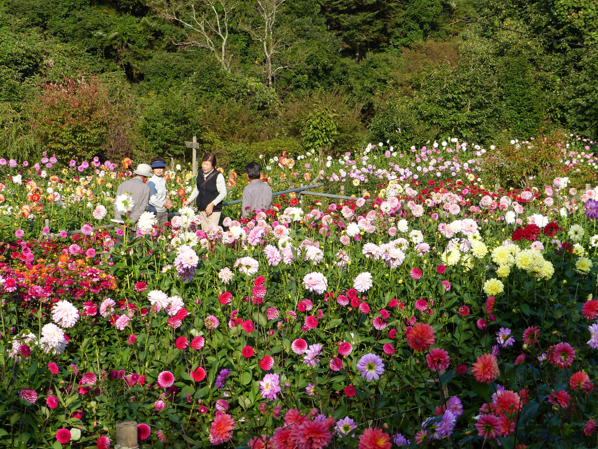 両神のダリア園が見頃を迎えています。今年は300種類、5000株が埋められ、様々な種類のダリアを見ることができます。