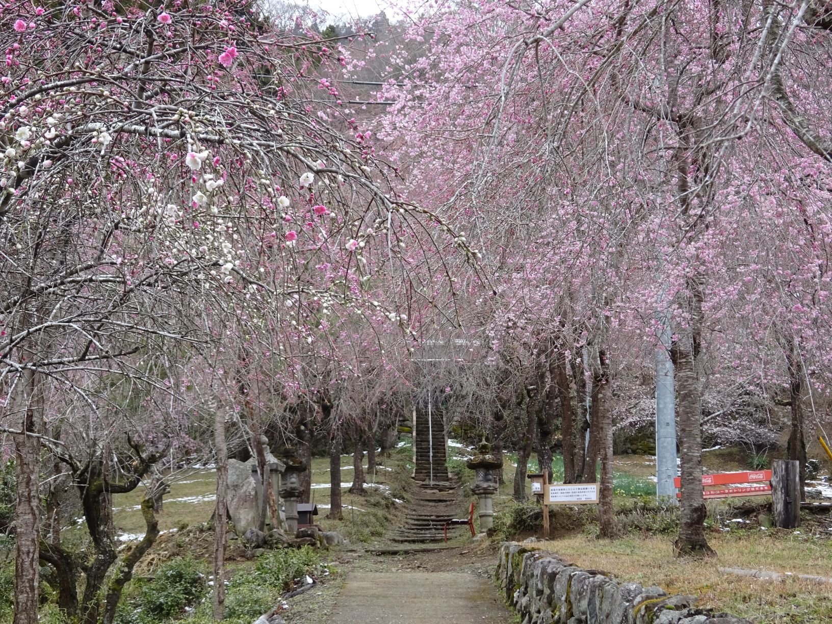小鹿野町三山久月地内にある光西寺のしだれ桜が、例年より早く見ごろを迎えています。